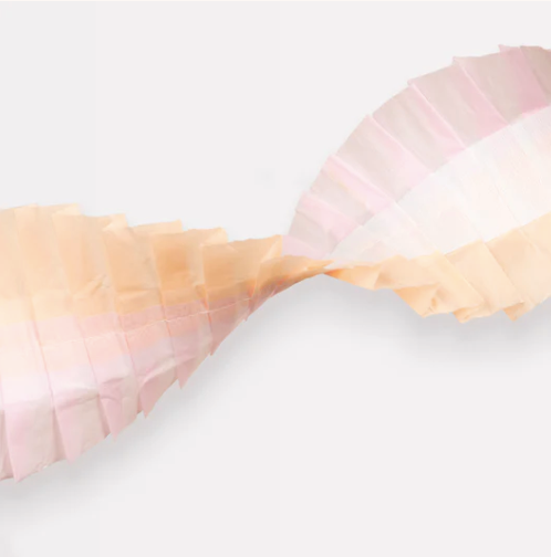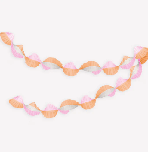 Peach, pink and white are an elegant combination of colors to add a touch of Springtime freshness to your celebrations any time of the year. This ruffled streamer is perfect for birthday parties or baby showers.