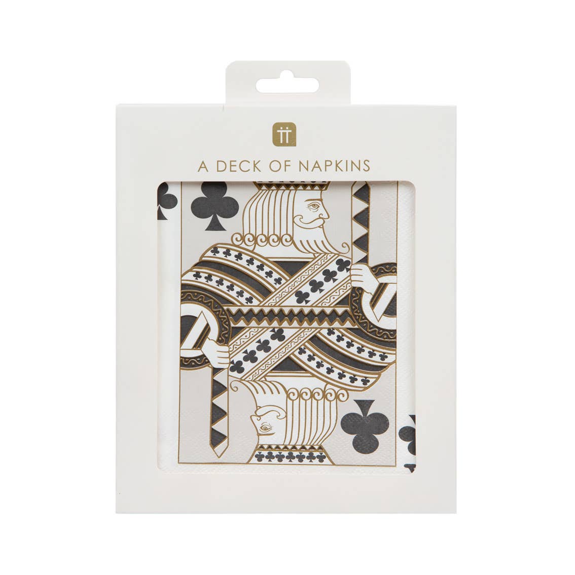 Pack of 20 Gold Playing Cards Napkins by Talking Tables. Deal your customers a royal flush with these playing card party napkins. Featuring a King, Queen, Jack and Ace on each side, these paper napkins make the perfect table decorations for a casino party, games night or Alice in Wonderland party.