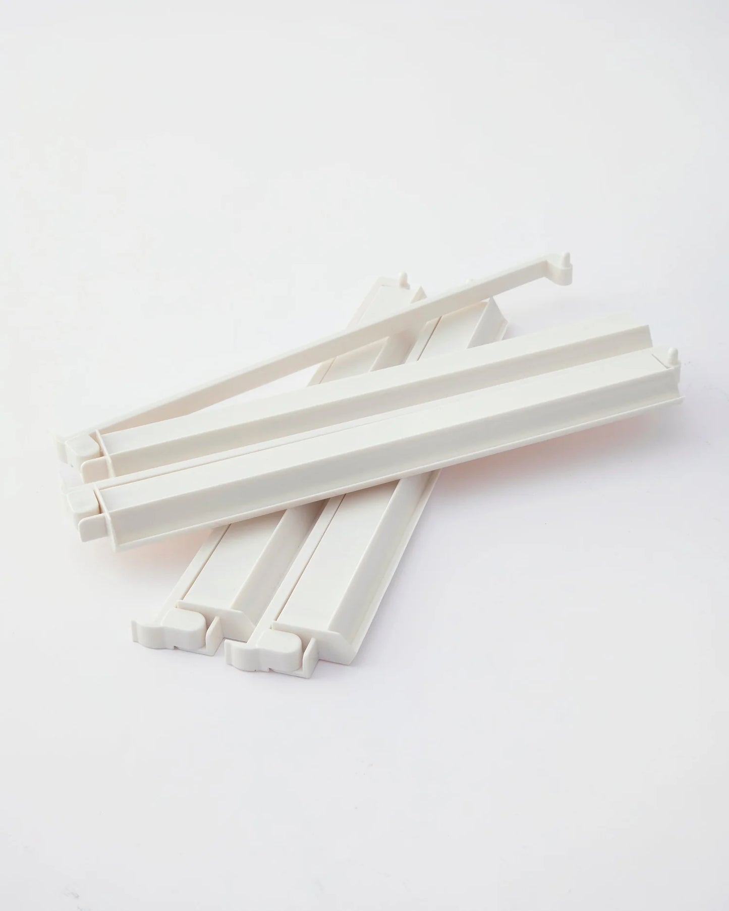 Each set includes four white acrylic racks with attached pushers, with a stack length of 18.5 inches. Don't forget to complement your set with our Let's Rack and Roll bag, perfect for storing your racks and pushers in style between games.