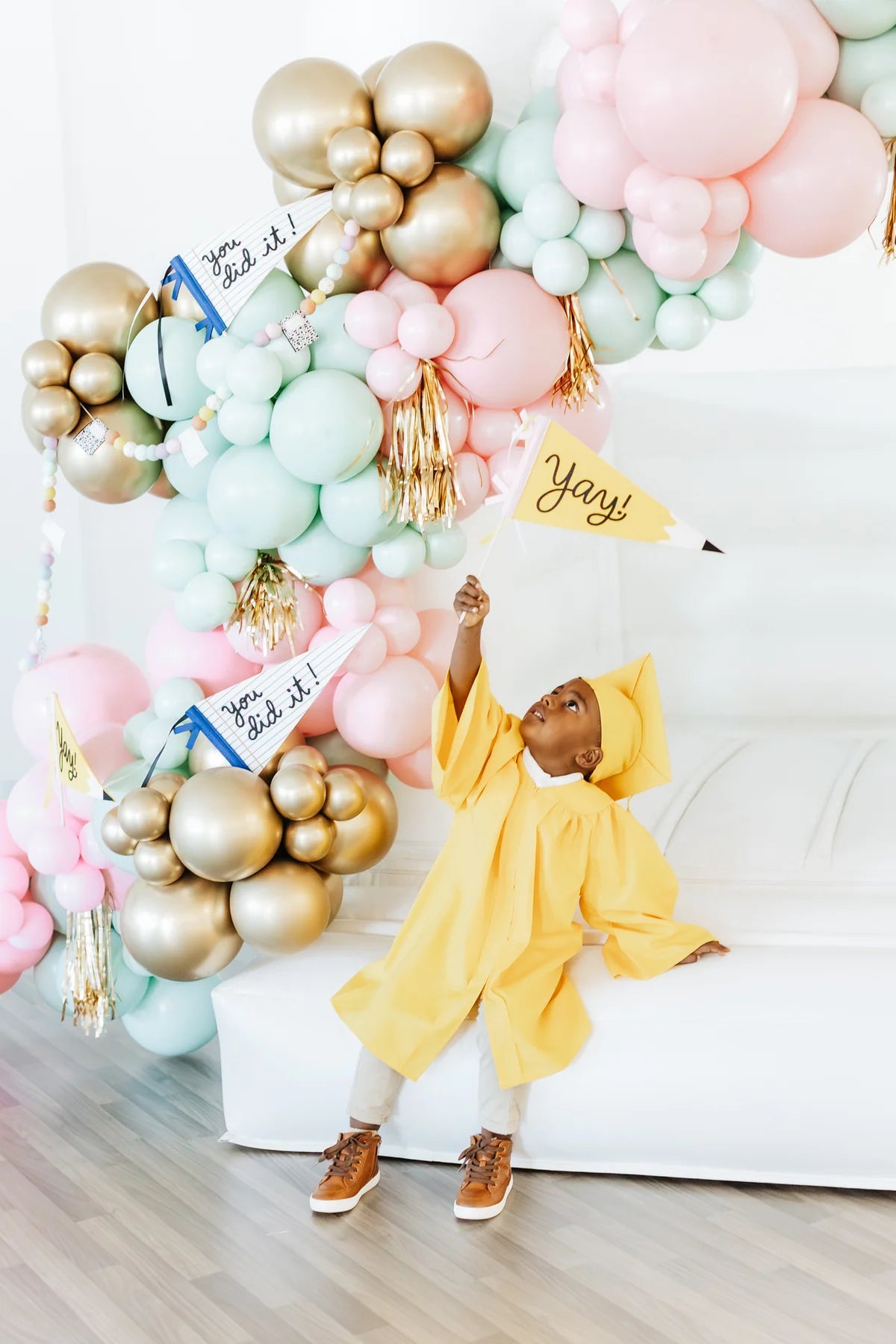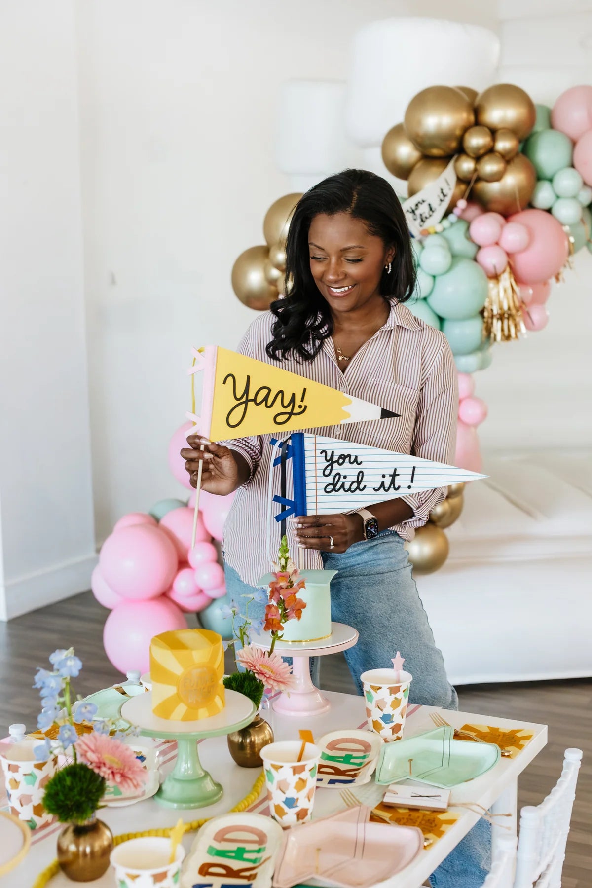 Celebrate graduation with our Occasions by Shakira Yay Pencil Felt Pennant! This unique felt pennant is shaped like a pencil with a playful "yay" message, making it the perfect addition to any graduation occasion. Bring some fun and personality to your celebration with this festive piece.